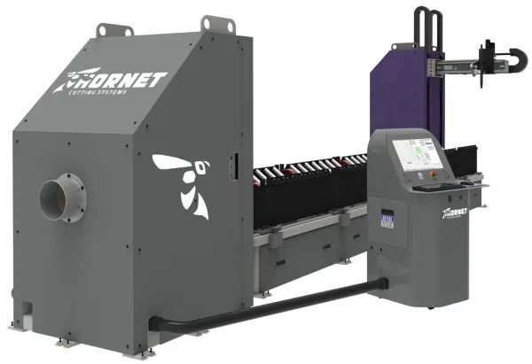 The Roto Hornet 2000 was designed and developed to increase production and improve accuracy for your pipe cutting needs. Our innovative pneumatic pipe loading table, Hypertherm’s plasma systems, the Hypertherm CAM Rotary Tube Pro software, and our heavy-duty design are combined to produce one of the industry’s best pipe cutting machine.